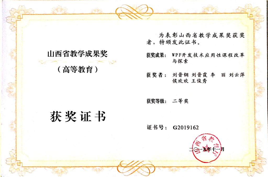 山西省教学成果二等奖。