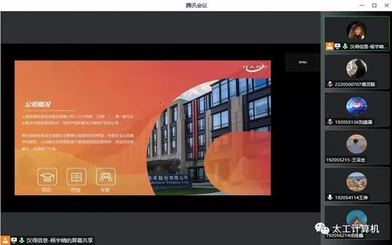 为切实做好我系2023届毕业生就业工作,更好地为毕业生与用人单位搭建双向选择的就业平台,2022年11月8日晚,我系通过腾讯会议组织开展上海汉得信息2022校园招聘宣讲会,参加本次会议的有辅导员张英、我系19级毕业生,会议由公司HR杨宇晴主持。