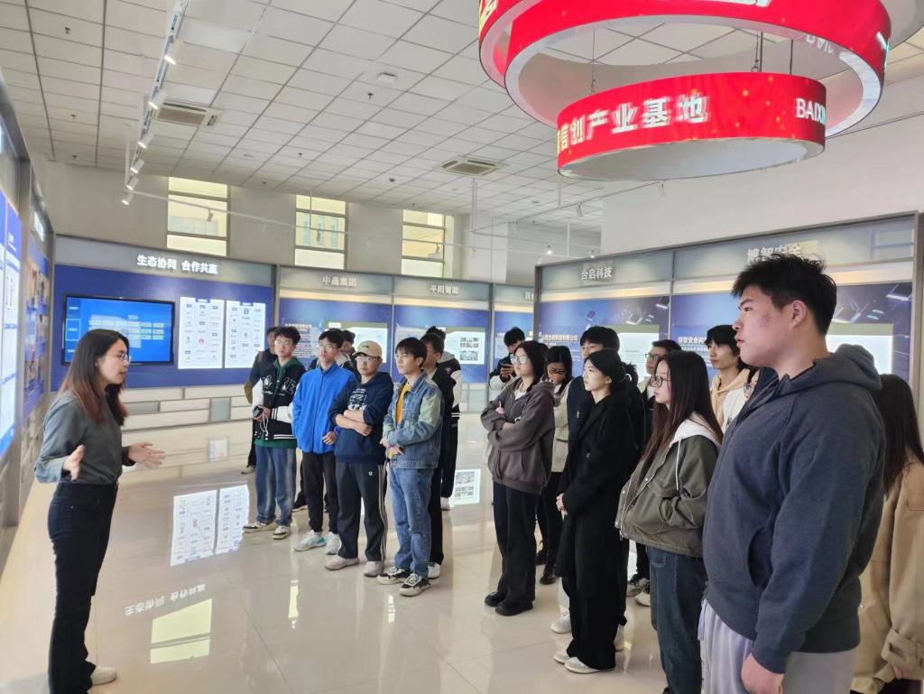 同学们跟最企业人员来到产业基地各个展厅进行参观。随后企业工作人员详细介绍了企业架构、发展历程、产业布局、企业文化、人才培养机制等企业概况与发展前景。在交谈谈会上,企业相关负责人向学生介绍了我市就业创业政策、行业情况、招聘需求等,并解答了学生提出的问题,让学生对企业及未来就业有更清晰的认识。