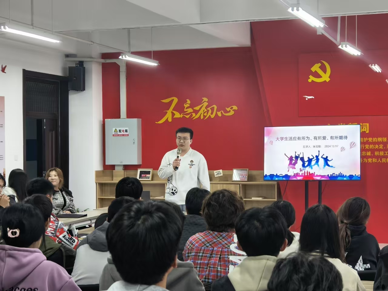 朱聪聪学长以“大学生活应有所为、有所爱、有所期待”为题,从三个方面展开分享。一是有所为,他分享了自己学生干部的工作经历,并指出担任干部对于提升综合能力、丰富大学生活、增加竞争力的重要性。二是有所爱,他提出要对自己、他人、知识、社会有所爱,要建立自己的人际关系和兴趣爱好。三是有所期待,他建议大家要建立自己的目标,要有短期目标、中期目标、长期目标,把目标一步一步变为现实。