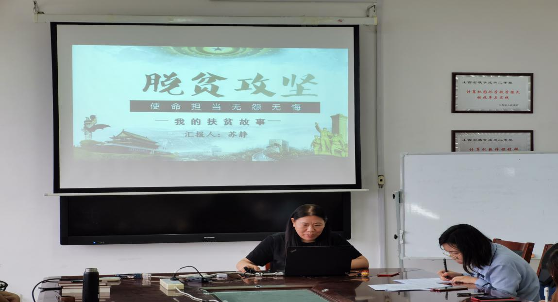 6月16日下午,yl9193永利官网邀请获得全省脱贫攻坚先进个人荣誉称号的苏静同志作先进事迹报告。全体教职工参加,系党总支书记于志奇主持报告会。