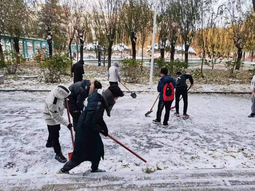 为及时消除大雪带来的安全隐患,给校内外师生出行提供便利,11月6日下午,我系组织部分19级、20级学生对西区劳动责任区域进行了清扫道路积雪志愿活动。在负责人的带领下,铲雪工作井然有序、安全高效。