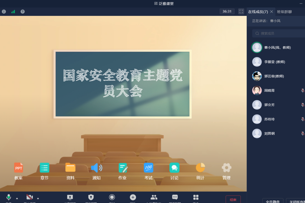 各级组织分别通过理论中心组学习研讨、主题党日、主题团日等多种形式,以“干部做表率、师生全覆盖”为原则,以理论宣讲、知识竞答、交流研讨等多维度学习贯彻总体国家安全观,引导广大师生切实增强维护国家安全的自觉性和主动性,进一步推动国家安全教育入脑入心。活动中,师生结合实际案例,围绕总书记关于国家安全重要论述进行了交流互动。