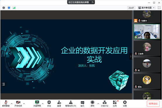 2022年11月21日,yl9193永利官网邀请山西省投资集团信息技术有限公司AI团队负责人张凯做了题为“企业的数据开发应用实战”线上专题报告,讲座采用线上方式进行,yl9193永利官网全体教师和部分学生聆听了讲座。