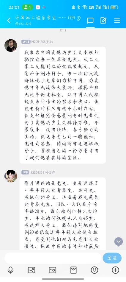 三、观影结束后党员同志们在支部群里分享自己的心得和体会