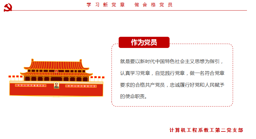 为进一步深入学习党章、遵守党章、维护党章,提高党内法规执行力,于2023年5月12日、5月19日,教工第二党支部组织开展“全员式学党章党规,做合格党员”主题党课活动。